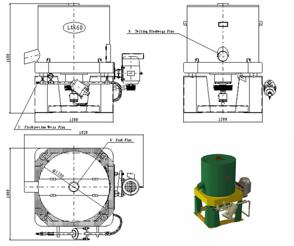 本產品自1985 年開始研制該設備,現已生產出三種型號。經選礦試驗測定證明,砂金回收率在99%以上,特別是回收脈金礦中的單體金時,在磨礦粒度小于0.074mm